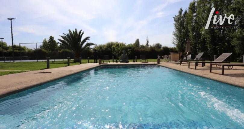 Ubicada en uno de los condominios más seguros de Chicureo, esta propiedad combina elegancia, amplitud y contacto con la naturaleza, a solo 25 minutos de Vitacura. Su diseño estilo provenzal y la abundante luz natural que ingresa por sus ventanales y terrazas crean un ambiente cálido y acogedor, ideal para disfrutar en familia.